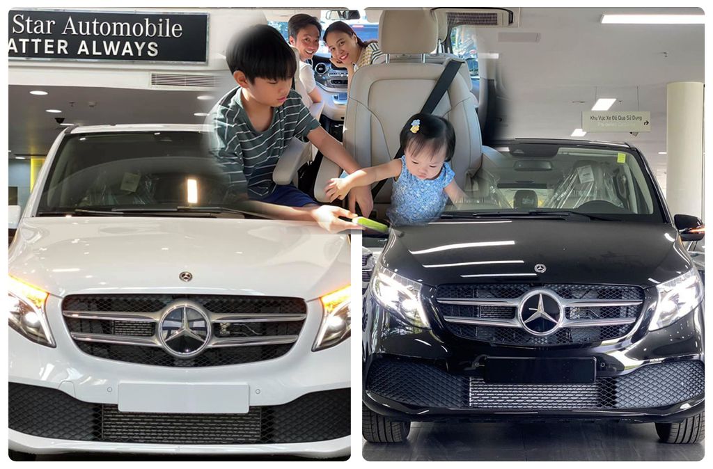 Do mỗi bé (con trai và con gái) của doanh nhân Nguyễn Quốc Cường thích một màu sắc khác nhau, ông bố 8x đã quyết định tậu liền lúc 2 chiếc Mercedes-Benz V-Class tặng cho 2 “nhóc tì” của mình.