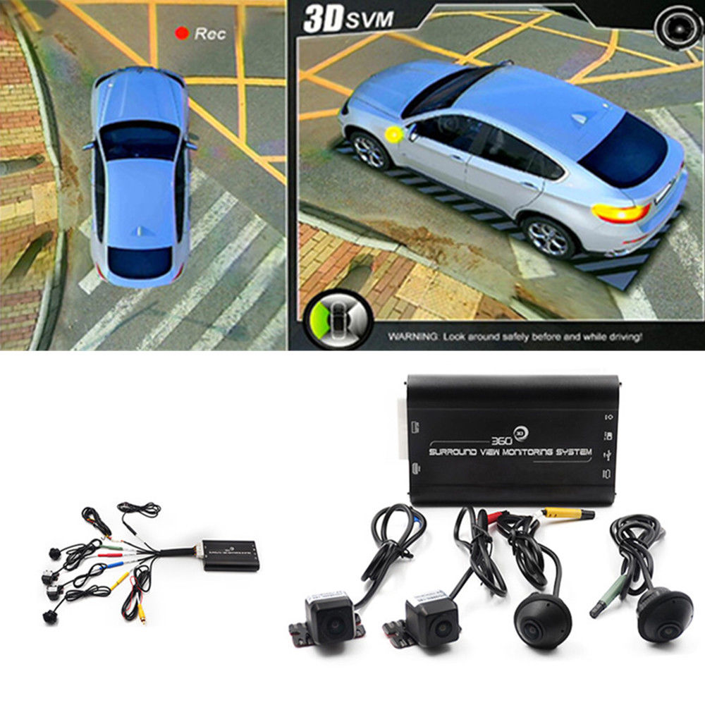 Cấu tạo camera 360 độ gồm 4 mắt camera góc rộng được đặt tại vị trí trước, sau và 2 bên gương chiếu hậu. Tất cả hình ảnh thu về sẽ được kết nối và hiển thi với màn hình DVD trung tâm hoặc màn tablo, màn hình tích hợp gương giúp hiển thị hình ảnh giả lập.