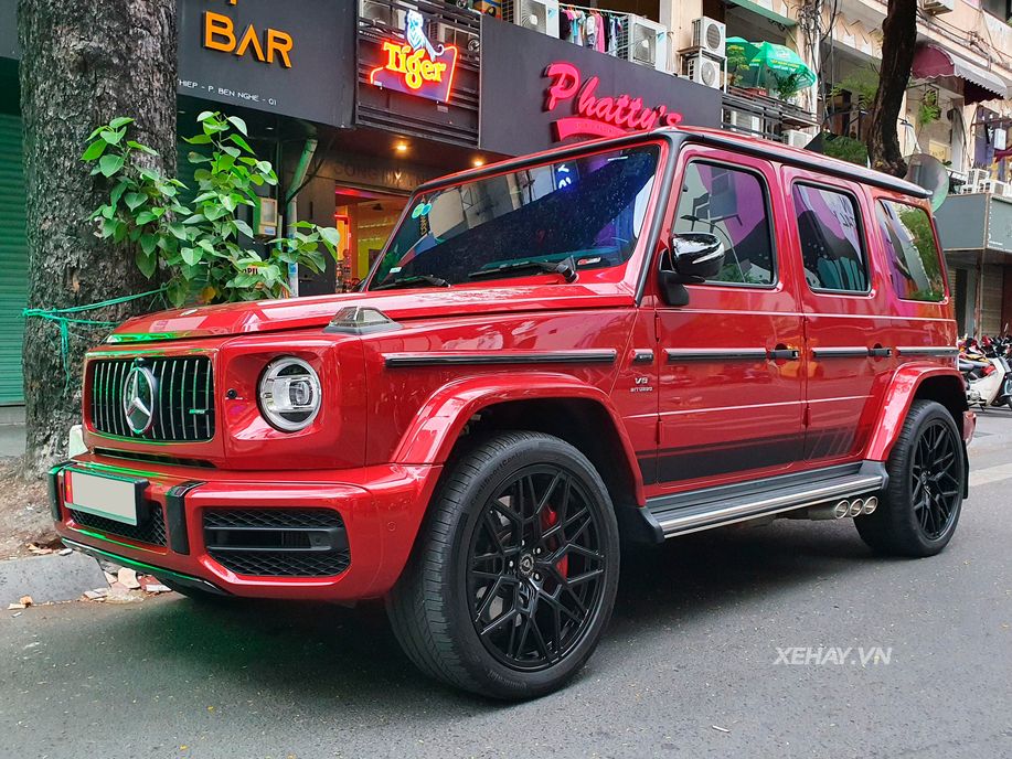 Bên cạnh bộ ống xả Capristo, chiếc G63 trong bài còn thu hút người xem ở nước sơn ngoại thất màu đỏ Cardinal Red, khác biệt so với phần đông những chiếc G63 trong nước đều có màu sơn đen hoặc trắng. Đi kèm với đó còn là trang bị bộ mâm độ mã hiệu UV-1 với thiết kế đa chấu do hãng Vossen kết hợp cùng thương hiệu Urban Automotive tạo ra.