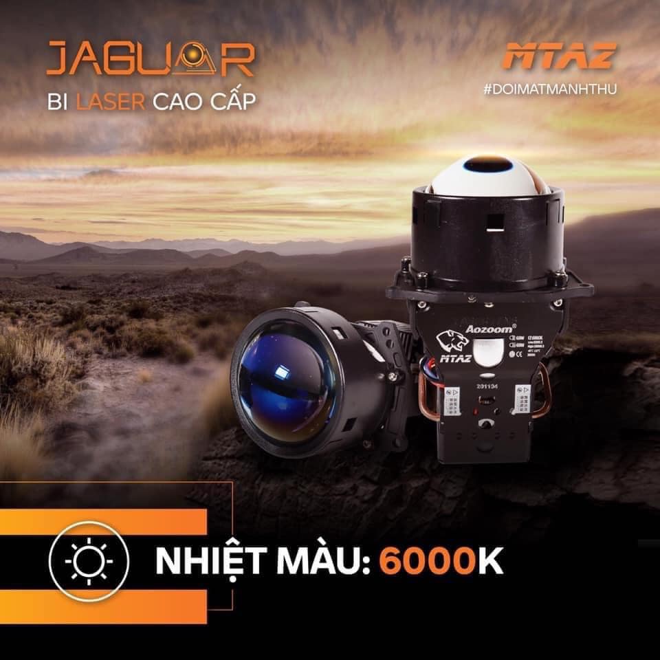 Bi laser Jaguar được phủ 1 lớp màu xanh tím, phủ 1 lớp Polarized chống chói . Phần thân bên trái của đèn được in logo thương hiệu của Aozoom , 1 sản phẩm mới của bộ sưu tập mãnh thú MTAZ