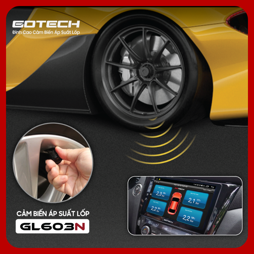 Cảm biến áp suất lốp GOTECH GL603N là thiết bị cảm biến van ngoài tích hợp trực tiếp lên màn hình Android. GOTECH GL603N có khả năng hiển thị áp suất, nhiệt độ thực tế của 4 lốp cùng lúc, cảnh báo trực tiếp bằng âm thanh và hình ảnh khi xảy ra sự cố giúp tài xế nâng cao an toàn khi tham gia giao thông.