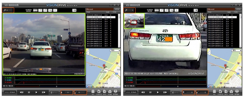 VisionDrive VD-8000 Basic có thể ghi hình với dữ liệu bản đồ của Google, giúp bạn xem lại video với hành trình mình đã đi qua, cần phải có kết nối internet để xem video với bản đồ Google. G-sensor giúp lưu lại video không bị ghi đè khi xảy ra va chạm.