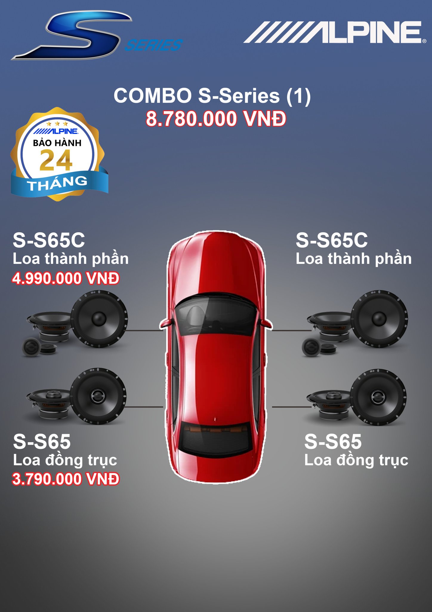 Combo Độ Loa Alpine S-Series là combo độ loa cơ bản, giá thành hợp lý. Bao gồm các thành phần loa cánh Alpine S-S65C và Loa đồng trục S-S65.