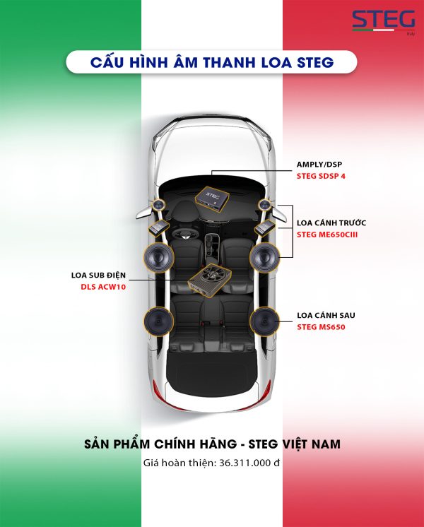 STEG là thương hiệu âm thanh hi-end của Italia, vừa đoạt nhiều giải thưởng tại cuộc thi Âm Thanh Xe Hơi EMMA 2020 Thái Lan – thủ phủ của ngành ô tô Đông Nam Á. Các dòng loa STEG nổi tiếng với chất âm Châu Âu, âm bass xuống sâu, âm mid mượt mà, âm treb tách bách, mở nhạc lên là đi vào lòng người.