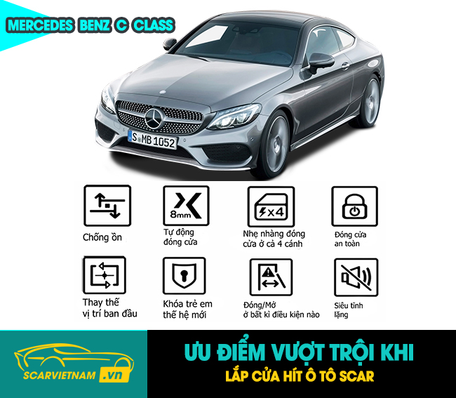 Và trong bài viết hôm hay, SCAR VIỆT NAM xin giới thiệu đến quý khách bộ cửa hít tự động cho Mercedes dòng Benz C Class – với tính năng nổi bật chắc chắn sẽ khiến quý khách hài lòng.
