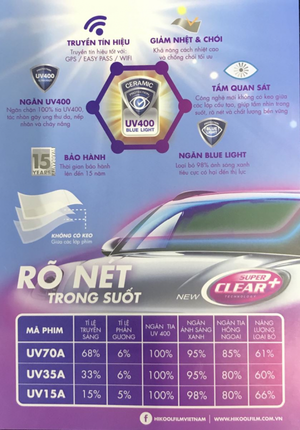 Phim Cách Nhiệt Hi-Kool được áp dụng công nghệ phim cách nhiệt hàng đầu thế giới, điển hình như công nghệ phim nhiều lớp, công nghệ phún xạ – tráng phủ kim loại (Metalizing), công nghệ Nano – Carbon, công nghệ triệt tiêu UV400 – ánh sáng xanh (Bluelight) và công nghệ Nano – Carbon – Ceramic (Gốm kết hợp Carbon)…, phim cách nhiệt của Hi-Kool có khả năng cản phá nhiệt lên đến 84% vượt bậc so với các loại phim thông thường; triệt tiêu các loại tia độc hại như tia hồng ngoại, tia UV đến hơn 99%; giúp bảo vệ sức khoẻ và làn da dưới tác động trực tiếp của ánh mặt trời.