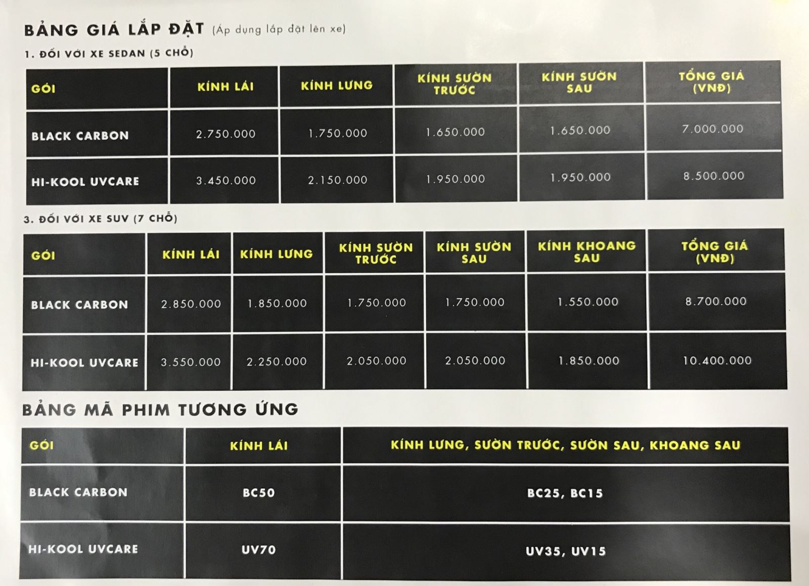 Bảng giá phim cách nhiệt của Hi-Kool áp dụng từ tháng 01 năm 2020