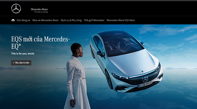 Mới đây, trên trang chủ của Mercedes-Benz Việt Nam (MBV) đã xuất hiện thêm dòng xe Mercedes-EQ trong danh mục sản phẩm, mẫu EQS là mẫu xe duy nhất xuất hiện trong danh mục này. Đây là điều Tổng Giám đốc Mercedes-Benz Việt Nam đã từng hé lộ rằng sẽ sớm đưa thương hiệu xe điện hạng sang EQ về Việt Nam hồi đầu năm.